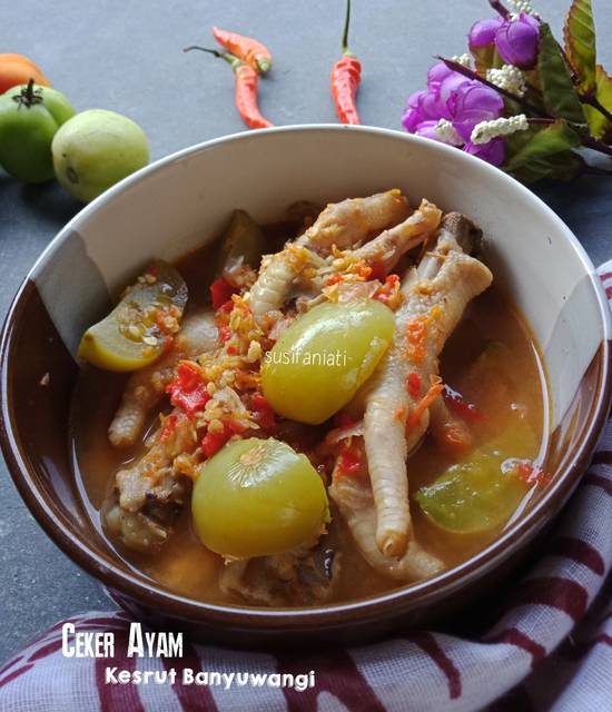Ayam Kesrut atau Uyah Asem berbahan baku ayam kampung muda yang dimasak dengan bumbu-bumbu sederhana yaitu, cabai merah besar, cabai rawit, terasi, gula, garam dan juga belimbing sayur. Nama kesrut sendiri diambil dari cara makannya yang diseruput atau istilahnya kesrut. Sementara nama uyah asem diambil dari rasanya yang asin dan segar asam serta bumbu yang digunakan. Cara memasaknya pun sangat mudah, ayam kampung dipotong kecil-kecil lalu direbus dengan bumbu yang sudah dihaluskan hingga matang. Terakhir masukkan belimbing sayur yang sudah dipotong-potong.